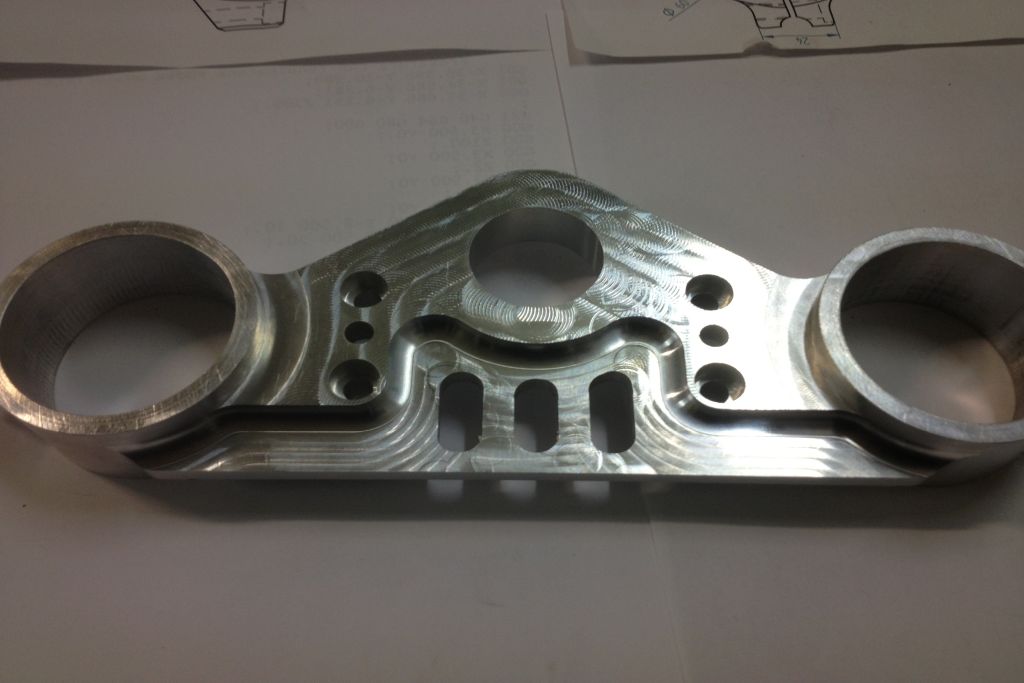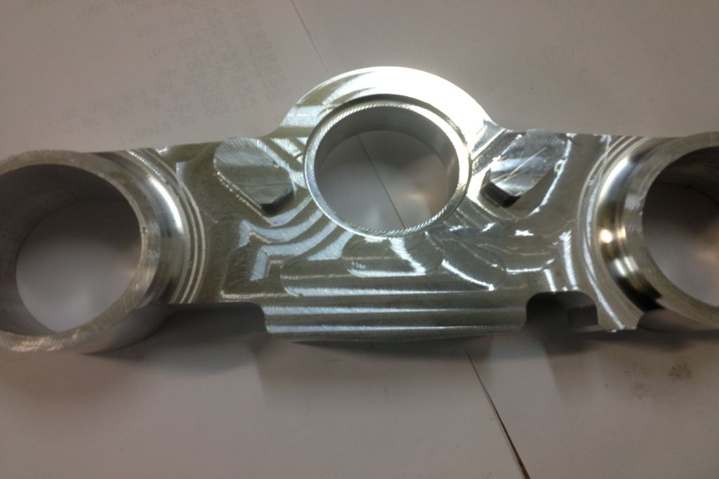 Sono fotografie del gruppo piastre di sterzo, con offset regolabile, per Honda CRF 150 Minimotard. Le foto sono realizzate, appena dopo le prime lavorazioni.